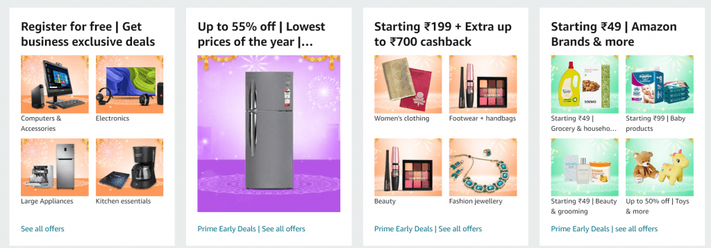 Celebrating Diwali with Amazon, Diwali sale includes early access for Prime members, No Cost EMIs, and additional benefits on the use of credit & debit cards, e-wallets, and special bank offers.