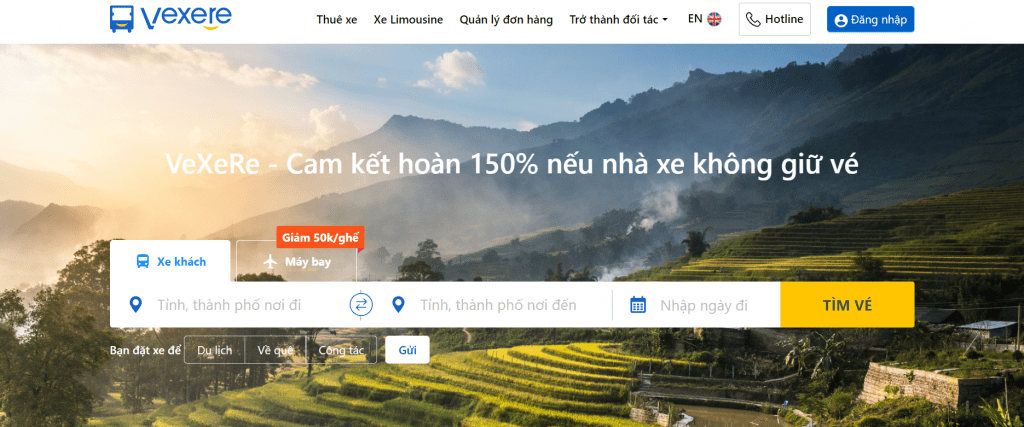 Currently, VeXeRe is the largest bus ticket system in Vietnam. Not only does VeXeRe provide users with a wide choice of car companies, car models and quick and convenient ticket booking solutions, VeXeRe also has many monthly incentives, helping customers to book high-quality bus tickets with high-quality bus tickets. Lowest price in the market. Passengers can easily pre-select their favorite seats, pay for tickets online, or in cash at convenience stores across the country.
